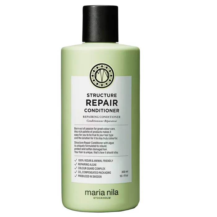 Der MARIA NILA STRUCTURE REPAIR CONDITIONER mit reparierenden Algenextrakten ist speziell auf die Bedürfnisse von geschädigtem, trockenem und chemisch behandeltem Haar abgestimmt. Reparierende Algenextrakte bauen das Haar auf und reparieren die Haarstruktur. Der Colour Guard Complex schützt die Haare zudem vor UV-Strahlen und sorgt für länger anhaltende, strahlende Farbkraft.
